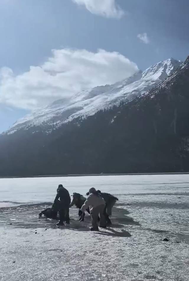 社交平台一段视频显示,2月24日中午1时许,一声急促的呼救打破了然乌湖边的宁静,有人大喊“救命”。顺着喊声,附近的游客紧急赶向事发地。